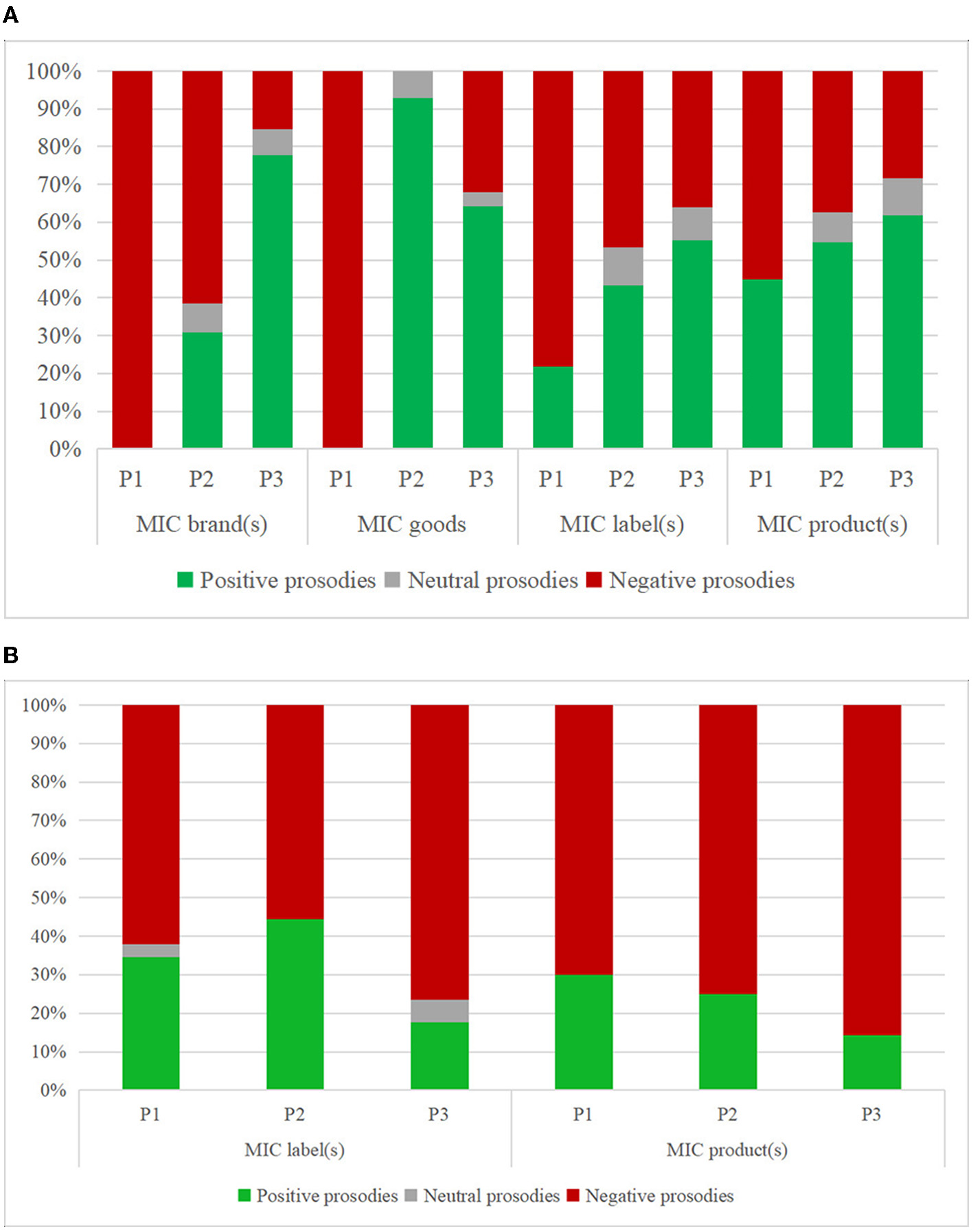 Reviewing the CDA studies that adopted semantic prosody, the research topics range from R.A.S.I.M., that is, Refugees/Asylum Seekers/Immigrants/Migrants (Gabrielatos and Baker, 2008), Muslims (Baker et al., 2013), to Chinese leftover women (Yu, 2019), which are concerned with collective identities rather than objects or phenomena. Semantic prosody contributes to illustrating newspapers' representations of the above subjects, e.g., the moral panic around R.A.S.I.M., the distinct Muslim community that easily gets offended and otherized, and the stereotyped Chinese leftover women that are old (older than 27), single, and successful. Thus, to address the second research question, we adopt semantic prosody to explore the attitudes expressed in connection with the lexical combinations MIC+N.
