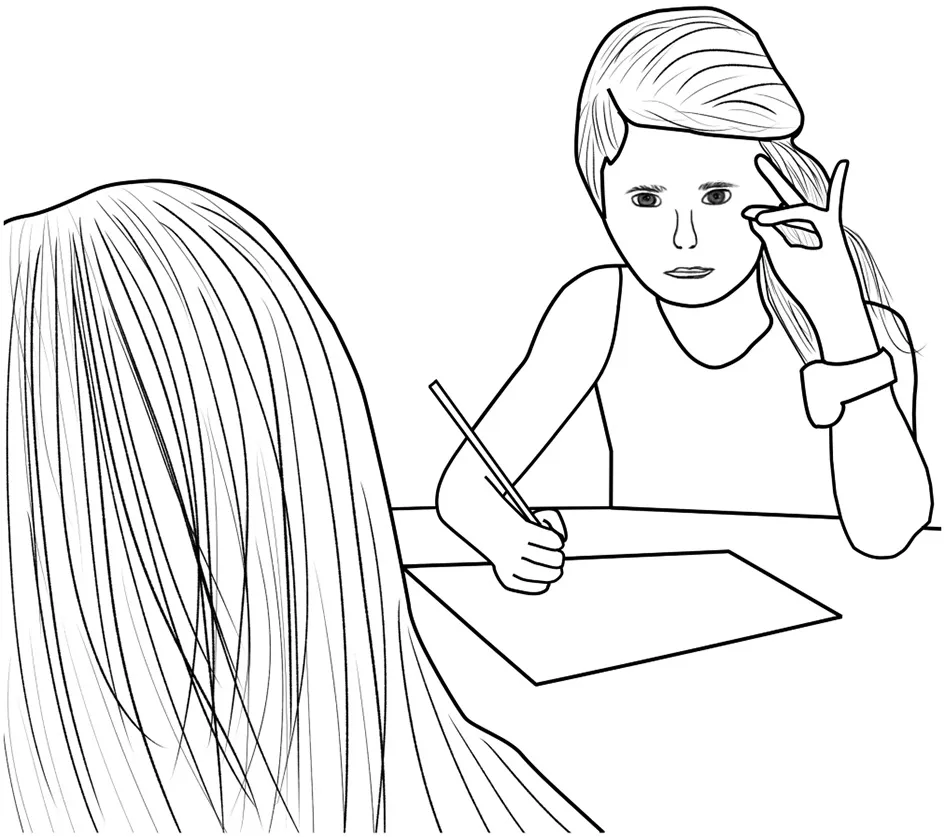 In this analysis, I focus particularly on Brooklyn,1 a seven-year-old White student, in part because she was one of the aforementioned nine students who regularly expressed interest in participating in the study, and also because she was often positioned as disruptive by Ms. Martin and her peers. The co-construction of what Brooklyn herself (cheerfully) described to me as a “sassy” persona and (tearfully) as a “trouble maker” identity began early in the year; for instance, my fieldnotes for the second day of school detail an incident in which a highly visible reproach–response sequence (see also Talmy, 2009; Evaldsson and Melander, 2017) culminated in Ms. Martin sending Brooklyn to the principal's office. The involvement of the principal and other adults in mediating conflicts between Brooklyn and other peers would become a recurring pattern throughout the school year, intensifying around March due to a series of disputes between Brooklyn and her three “best friends” in Room Z, Natalie, Sabrina, and Noelle, all three of whom were female-identified students of color2 and were the most popular girls in the classroom. By March, the four girls, a multiracial clique similar in its exclusivity to the groups studied by Goodwin (2006), were at the center of what Ms. Martin described to me as considerable “girl drama”, leading the teacher, several parents, and the principal to meet and begin implementing rules directing each of the four girls to refrain from talking with, playing with, and/or sitting with one or more members of their friendship group. I have chosen to examine gesture-mediated conflicts between Brooklyn and one or more of these three (former) friends as a “telling case” that helps “make previously obscure theoretical relationships suddenly apparent” (Mitchell, 1984, p. 239), including the relationships between gestures and peer conflicts in Room Z. It should be noted that despite the focus on female-identified students across the examples, my analytic focus is not on gender-specific practices or norms, a point on which I elaborate in the Discussion section.