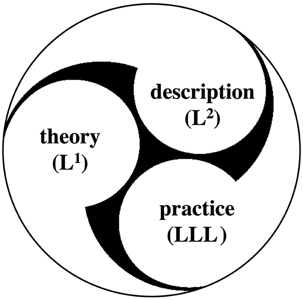 Halliday (2008, p. 7) coins the term “appliable linguistics” for the dialectic of theory, description, and practice informing his linguistic work. An outline of this problem-oriented perspective is outlined in Figure 11 (with multiple Ls allowing for the probability of a number of singulars influencing a given region of practice). This orientation to linguistics was an unusual one in the 20th century, the closest parallel being Pike (1988) tagmemics (viz., Pike's tagmemics and his “maxim” from 1988: “I wanted a theory that would allow one to live outside the office with the same philosophy one uses inside it”).11