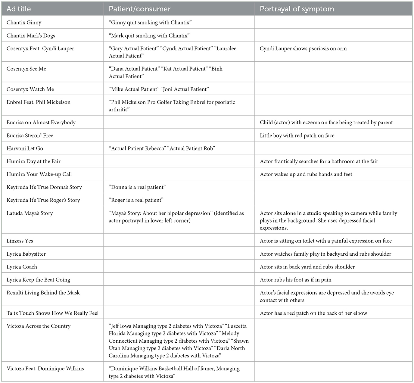 Ball, J. G., and Applequist, J. (2019). The use of narratives to deliver information in direct-to-consumer prescription drug commercials: a content analysis. J. Health Commun. 24, 512–524. doi: 10.1080/10810730.2019.1631915