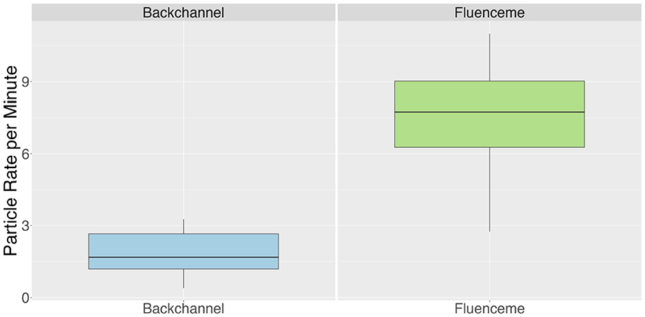 A Welch's t-test shows that the difference in rate per minute between BCs and FLs in general is significant (t = −5.47, p < 0.001, 95% CI [−6.01, −2.65], Cohen's d = −2.07). The difference in BC and FL rate between male and female conversational participants, however, is not significant.