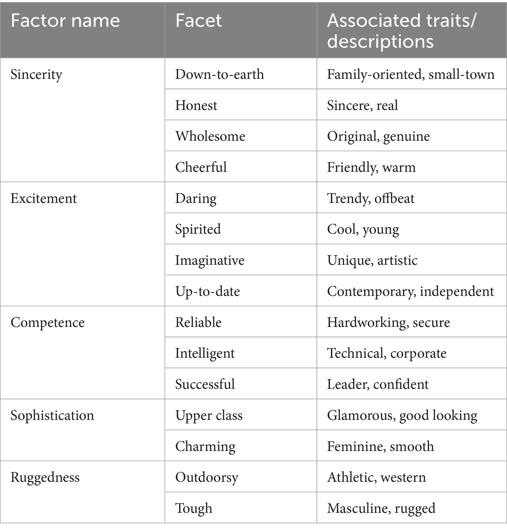 Table 1. Aaker (1997) 5 brand personality dimensions and 15 facets.