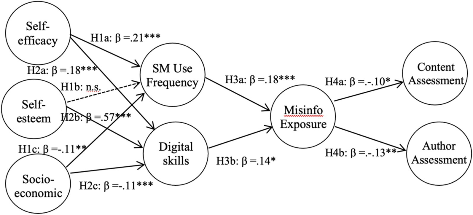 H3: Teenage girls’ social media use (H3a) and digital information competence (H3b) would be positively associated with their perceived exposure to misinformation on social media, even when controlling for social self-efficacy, collective self-esteem, and household socioeconomic status.