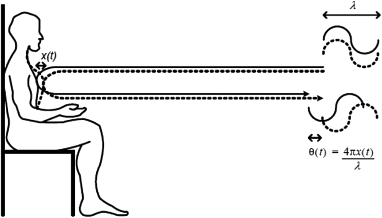 FIGURE 1. Basic principle of non-contcat physiological sensing using microwave Doppler radar. The phase change of the reflected signal represented as