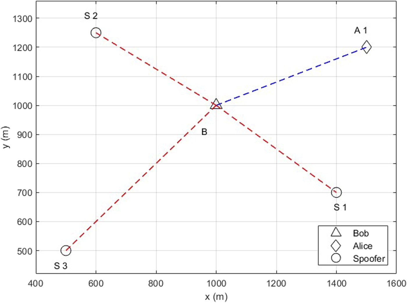 | Spoofer 1 initial position | 1,400 m and 700 m |
