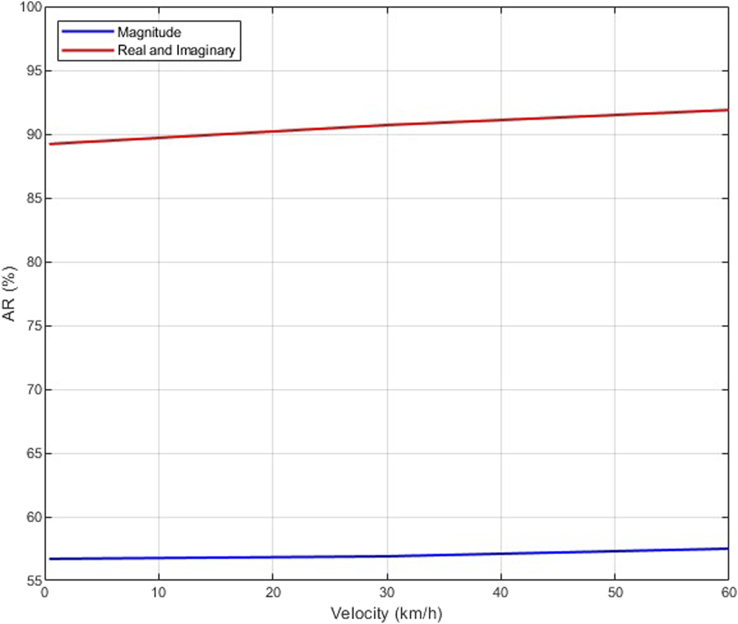 Figure 8 presents the MDR, FAR, and AR versus the number of receive antennas with an SNR of 8 dB, velocity of 0.4 km/h, and one transmit antenna for the single- and multiple-user scenarios. This shows that the MDR, FAR, and AR increase with the number of receive antennas in both scenarios. For instance, in the multiple-user scenario, the MDR decreases from 44.9% with one receive antenna to 40.1% with four receive antennas and 31.9% with eight receive antennas. The corresponding FAR decreases from 17.7% with 1 receive antenna to 3.7% with four receive antennas and 2.0% with eight receive antennas, while the AR increases from 68.7% with one receive antenna to 78.1% with four receive antennas and 83.1% with eight receive antennas. These results also indicate that the MDR, FAR, and AR are better in the single-user scenario than in the multiple-user scenario. For instance, with four receive antennas, the MDR for the single- and multiple-user scenarios is 17.8% and 40.1%, respectively, while the corresponding FAR and AR are 1.9% and 3.7%, and 90.2% and 78.1%, respectively.