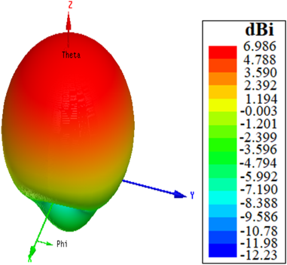 3D far-field radiation pattern of the graphene-based liquid antenna at 28 GHz.