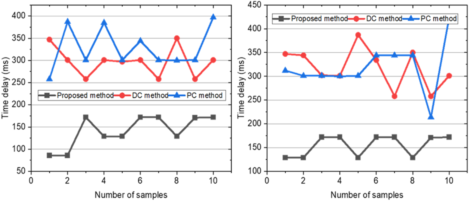 As shown in the figure above, it can be seen from the above figure that the performance of the proposed method for data transmission of the “Main data” stream and “Additional data” stream is better than the other two methods, while the performance of the remaining two methods is close to that of the other two methods. The average network delay of the “Main data” stream is 141.8 ms, and the average network delay of the “Additional data” stream is 154.7 ms. The average network delay of control group 1 is 297.2 ms for the “Main data” stream and 327.5 ms for the “Additional data” stream. The average network delay of control group 2 is 318.2 ms for the “Main data” stream and 318.4 ms for the “Additional data” stream. It is proved that the proposed method can effectively reduce network delay when packet loss occurs.