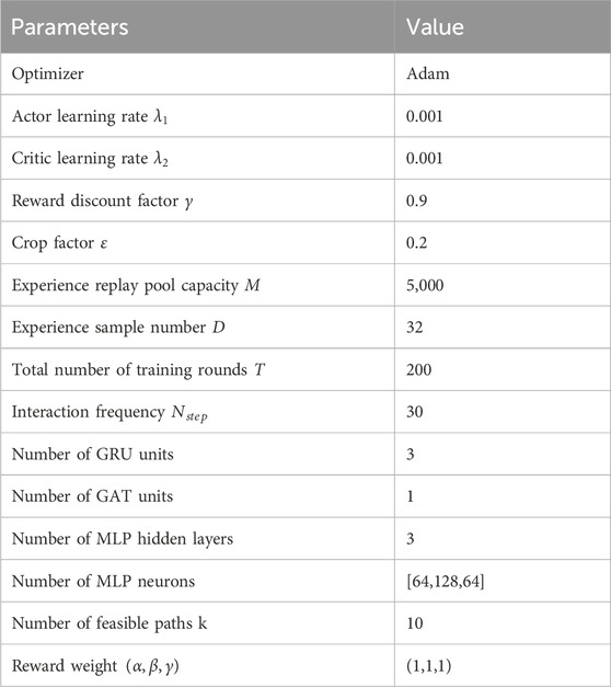 DRL offers the capability to learn complex, nonlinear policies through interaction with the environment, exhibiting superior flexibility and adaptability in solving practical problems. These advantages have opened new avenues for addressing complex network optimization challenges (Dake et al., 2021). To address the limitations of traditional routing strategies in SDN, particularly their inability to meet diverse application-level QoS requirements and their lack of interaction with the network environment, Li et al. (2021) proposed DRNet—an intelligent, QoS-aware routing algorithm. This approach utilizes traffic demand matrices and network state information as input to the DRL agent for training, enabling more flexible routing deployment. Fu et al. (2020) designed a deep Q network (DQN)-based routing strategy that distinguishes between mouse flows and elephant flows in data center networks, thereby improving throughput and reducing latency and packet loss. Liu et al. (2021) introduced a DRL-based routing algorithm that reconfigures network resources by assigning weighted importance to caching, bandwidth, and latency. Network states are represented as multidimensional inputs to the agent, enabling perceptual learning and optimized resource allocation, which enhances throughput and robustness. Casas-Velasco et al. (2021) proposed a DQN-based intelligent routing algorithm under the SDN architecture that learns path state information for dynamic routing decisions, addressing the challenge of traffic variability in traditional routing schemes. He et al. integrates graph neural networks with deep reinforcement learning to capture network topology information and guide routing decisions, which enables balanced traffic distribution and enhanced performance (He et al., 2023). Huang et al. (2022) developed a deep graph reinforcement learning (DGRL) routing algorithm that integrates graph convolutional network (GCN) with DDPG to achieve effective traffic control in wireless sensor networks. Zhou et al. (2022) proposed a PPO-based QoS-aware routing optimization mechanism, which adjusts the reward function dynamically according to different optimization goals, thus enabling a generic and customizable routing optimization framework.