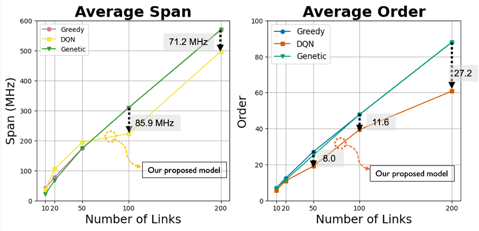 MO, minimum order; MS, minimum span; NFD, net filter discrimination; DQN, deep Q-learning.