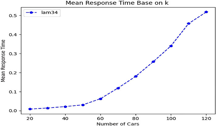 Figure 22. Average response time in vehicular networks based on the number of vehicles by mathematical analysis method of the study (Zhang et al., 2019); time unit: seconds (s).