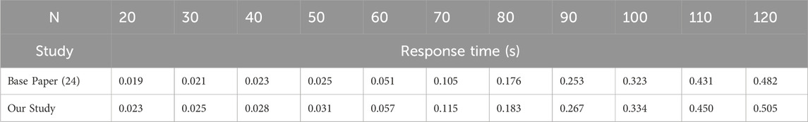 Table 13. Comparative response time results of the base paper and our study for varying number of nodes (N).
