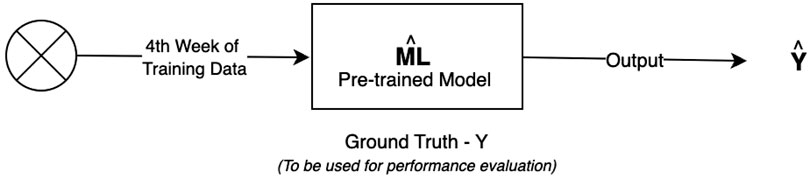 Figure 10. Block diagram of the testing setup: the final week of training is used as input to the pre-trained model, and the outputs are evaluated against the fifth week of data.