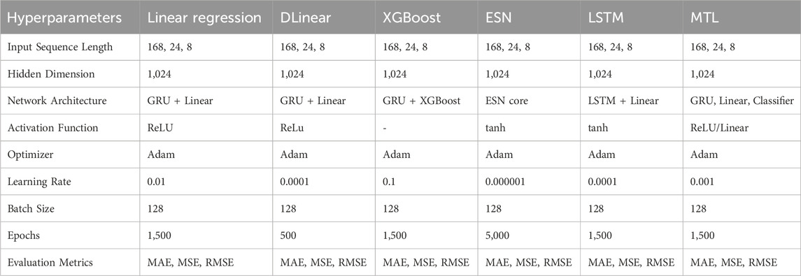 The hyperparameters for the models, as detailed in Table 1, were meticulously tuned to achieve an optimal balance between complexity and performance. Diverse configurations, including variations in the number of layers, were explored to identify the most robust setup. Sequence lengths of 8, 24, and 168 h were selected to effectively capture short-term fluctuations, daily trends, and weekly patterns, respectively, facilitating a comprehensive analysis of human behavioral dynamics.