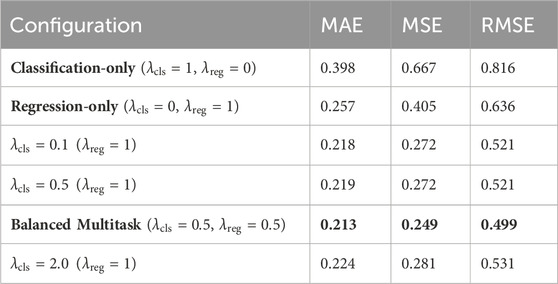 Table 4. Effect of Varying Classification and Regression Loss Weights on Multi-task Model Performance. Best results are bolded.