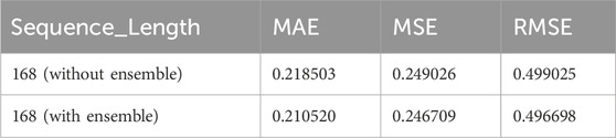 In addition, to ensure a fair and unbiased evaluation, particular care was taken to prevent any form of data leakage during ensemble training. Specifically, the ensemble weights were learned exclusively from historical weeks (training set) that were completely disjoint from the test week. Once optimized, these weights were fixed and directly applied to the held-out test week to generate performance metrics. This strict separation between training and testing guarantees that no information from the test week influenced the ensemble fitting, thereby preserving the integrity and reliability of the evaluation.