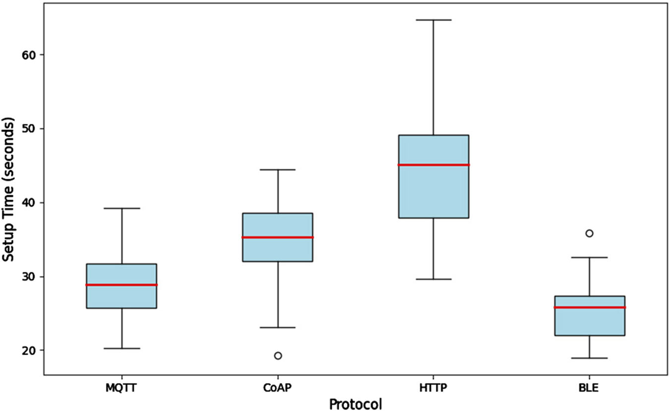In practice, the protocol translation process is executed through modular adapters, each dedicated to a specific communication standard (MQTT, CoAP, HTTP, and BLE). Incoming messages are first parsed into a normalized internal representation and placed in a lightweight in-memory buffer. This buffer decouples the arrival of messages from their reformatted delivery, allowing concurrent processing threads to handle multiple translations in parallel. The reformatting stage maps the normalized data into the target protocol’s data structures, applying headers, payload encoding, and metadata as required. This modular architecture ensures that protocol translation occurs within sub-100 ms under the observed traffic load, even in scenarios with simultaneous data flows from sensors, actuators, and access devices. Errors or unsupported conversions are isolated at the adapter level to prevent cascading failures and maintain service continuity in real-time conditions.