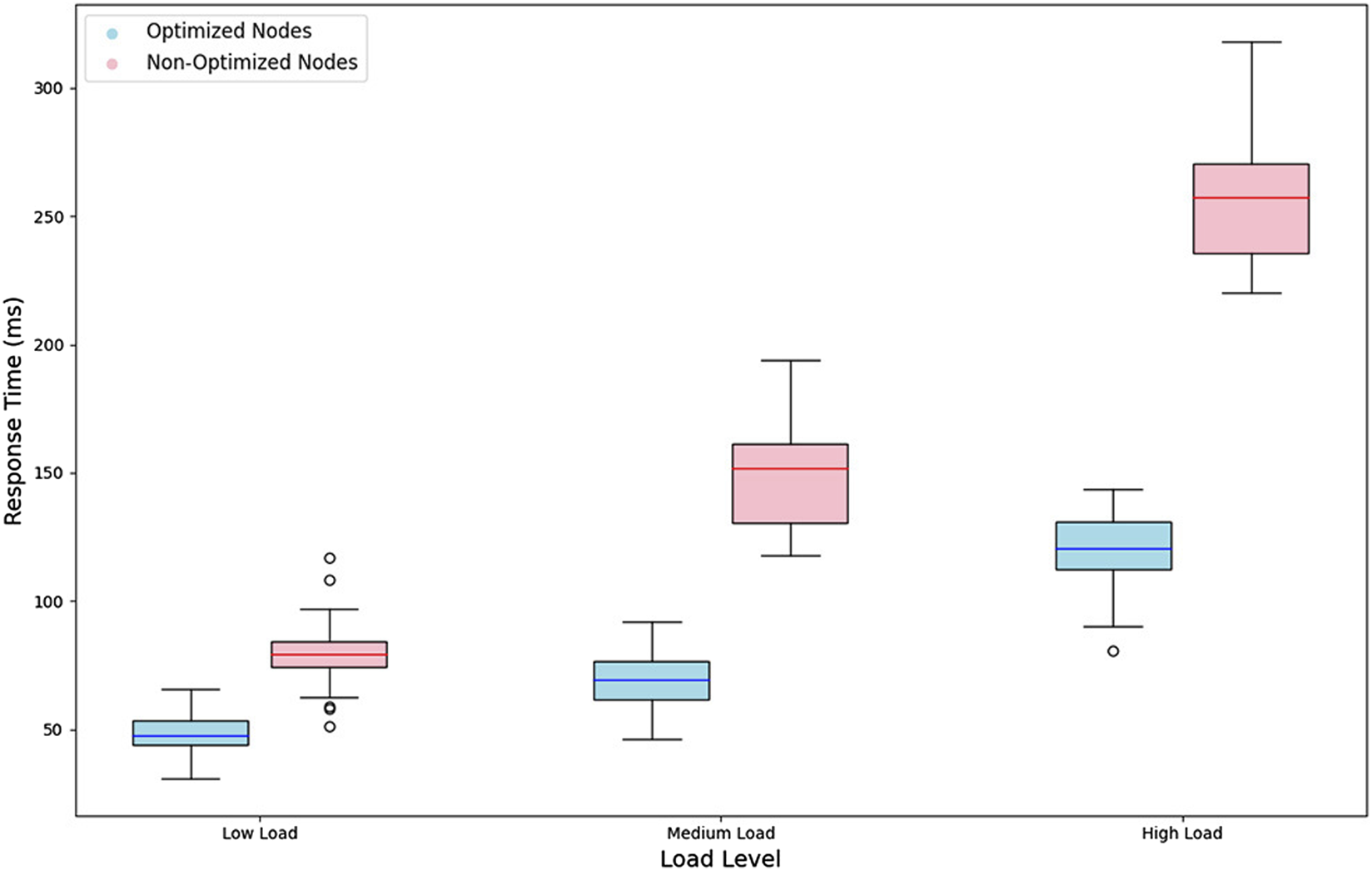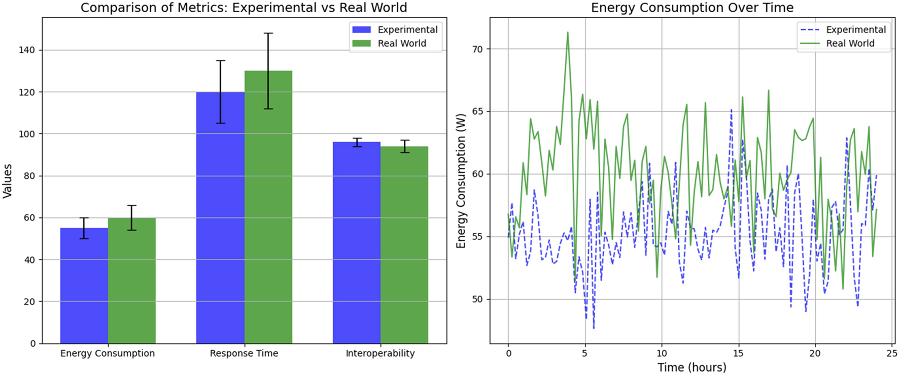 The development and validation of the middleware were conducted in two phases. In the first phase, controlled experimental tests evaluated its performance against key metrics, including energy consumption, response times, and interoperability rates. The results demonstrated that optimized nodes achieved a 25% reduction in power consumption, resulting in an average energy use of 60 W, compared to 80 W. Additionally, response times were improved, averaging 130 ms, compared to LoRaWAN’s 180 ms. The interoperability rate reached 94%, demonstrating the middleware’s ability to integrate diverse devices across various protocols. This evaluation involved the deployment of approximately 120 IoT devices operating under varied conditions within a Smart Campus.