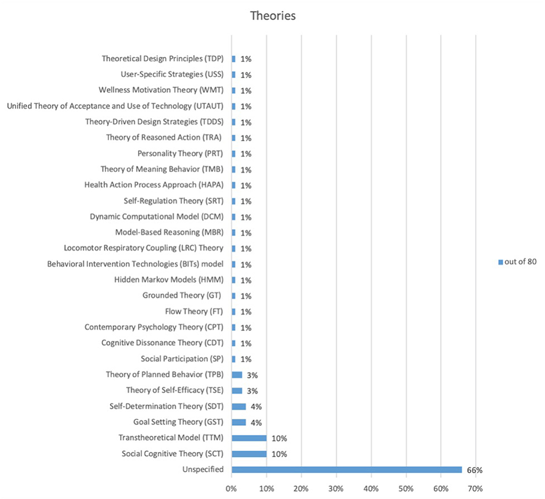 Figure 9. Behavior theories used in mobile phone-based persuasive technology (PT).