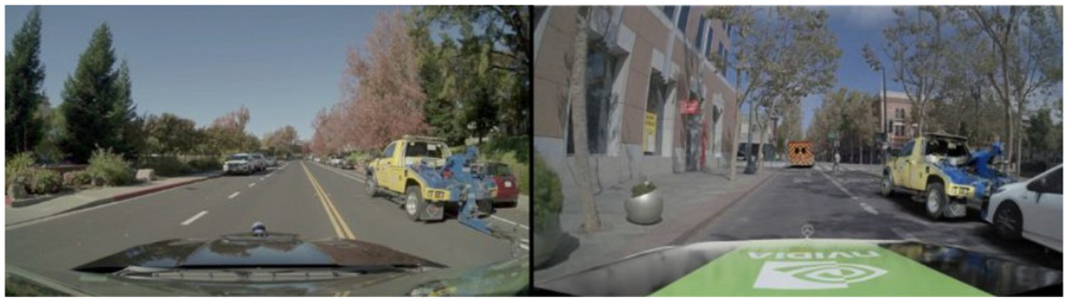 NVIDIA DRIVE Sim an end-to-end AV simulation platform designed from the ground up to facilitate large-scale, physically based multi-sensor simulations. This open, scalable, and modular platform supports AV development and validation from concept to deployment by creating highly realistic virtual environments for testing and training (Apostolos, 2024). The platform supports Hardware-in-the-Loop (HiL) testing by connecting with physical hardware, handling both single and multi-vehicle scenarios for research and commercial applications. It helps AI training for real-world unpredictability, speeds up development, and ensures regulatory compliance (Bjornstad, 2021). Using Nvidia AutoDrive’s advanced data, DRIVE Sim improves decision-making and employs a neural reconstruction engine to create interactive 3D test environments (Ghodsi et al., 2021). Its architecture includes highly accurate sensor models that simulate cameras, LiDAR, and radar, mirroring real-world conditions. It creates dynamic traffic scenarios with multiple vehicles, pedestrians, and environmental factors, adding complexity to simulations. Advanced techniques are used for detailed environmental rendering to precisely replicate real-world driving conditions. Its standout feature is the Neural Reconstruction Engine, a deep learning tool that translates real roads scanned by specific cameras into interactive 3D test environments, enhancing both the realism and variability of simulations. Additionally, it uses data gathered from various sensors to replicate real-world vehicles, creating assets that can be utilized in different scenes (Autonomous Vehicle International, 2023) as depicted in Figure 5 the left image shows a yellow truck scanned from a real-life scenario, which is then used as an asset in a different environment, as seen in the right image.