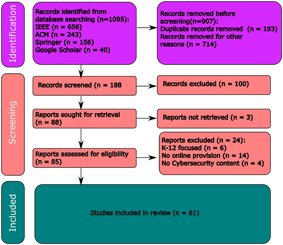 1. The search was limited to articles published between January 2010 and end of April 2024 as this period marked significant changes in how cybersecurity is taught.