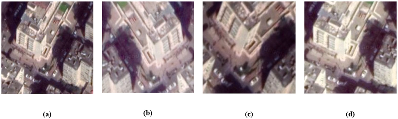 Figure 6 presents examples of augmented samples, where (a) represents the original image, while (b), (c), and (d) show augmented samples exhibiting richer color, contrast, and spatial features. The augmentation results appear realistic and consistent with satellite imagery characteristics.