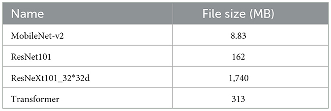 Four models were used for scene classification in this study and compared, including Mobilenet-v2, ResNet101, resnextt101_32x32d, and Transformer (Table 4). A brief introduction to each model architecture is provided below.