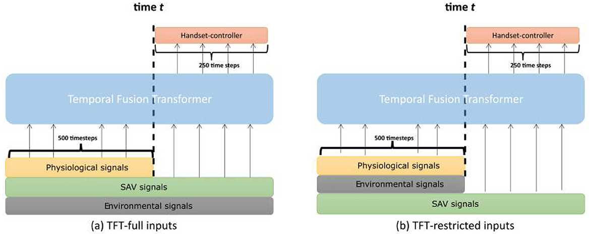 First, TFTs can support heterogeneous inputs of input data, ranging from time-dependent to static, and from known variables, which can either be obtained in advance or is already determined (such as the date or time in the future), to unknown variables, which can only be quantified at each step and are not identified in advance. Although our specific dataset does not include static features, it is important to note that, in this context, static features could represent different automated vehicles with distinct physical characteristics. It should be emphasized, however, that our analysis is conducted solely in a simulated environment, and including known variables or unknown features in the data can improve the model's performance by augmenting the input. For instance, future-known variables, such as data or signals obtained from the driving simulator at time t, are already incorporated into the forecasts. Besides, unknown inputs, like physiological signals, can also be incorporated to support the forecasting process. Thus, in time series forecasting, detailed consideration of the nature of different input features is required, with each known or unknown feature requiring specific data handling techniques to maximize the extraction of critical patterns from the data.