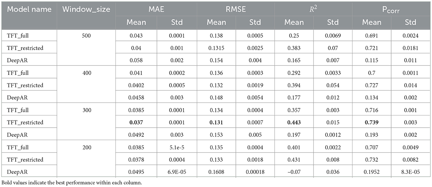 Discussion: In our study, TFT-restricted outperformed TFT-full and the autoregressive model DeepAR in discomfort prediction, delivering superior results for all metrics. Finally, our study shows that the TFT can capture temporal dependencies in the data and help us interpret the model for detecting discomfort, which is essential for analyzing and improving people's acceptance of automated vehicles.