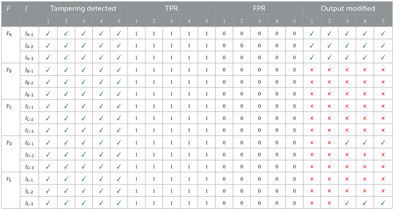 This section presents the results that validate the applicability of the proposed solution. The evaluation focuses on performance in detecting tampered input parameters and on preserving function outcomes when parameter authenticity is confirmed. The experiments also assess the proposal's impact on the protected code, considering both the modifications required for integration and their effect on performance. Specifically, results are reported for code size and execution time, showing effective detection of tampered inputs across different values of I. Moreover, the approach requires neither significant resources nor a complex environment for development and execution.