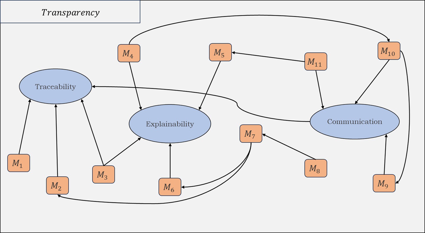 Figure 10. A hypothetical example of the interdependencies among components for the requirement “Transparency” (bottom-up).