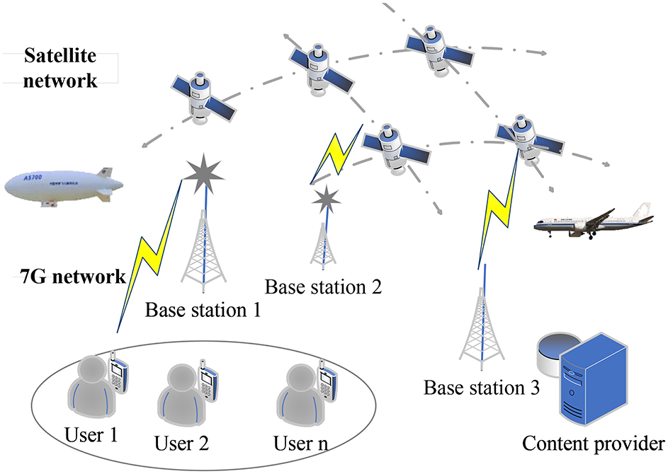 ICN uses content instead of TCP/IP to transmit data (https://www.rfc-editor.org/info/rfc9508) and has been widely adopted in content delivery and other fields. It is also considered the network architecture of the future. It is a new type of network centered on content or data. It performs large-scale data transmission and delivery by decoupling content and location, abandoning the communication mode centered on IP addresses in traditional networks. It utilizes content caching to achieve efficient data transmission, and its content caching technology is particularly suitable for multi-path transmission (Nadeem Ali et al., 2025). The entire network comprises content providers, users (consumers), base stations, satellites, and other components. Users request data from content providers through interest packets via satellite links, and content providers respond to these requests according to the data packets specified by the users. Since ICN has the function of content caching and the satellite network has multiple transmission links, the entire 7G network forms multi-path transmission.