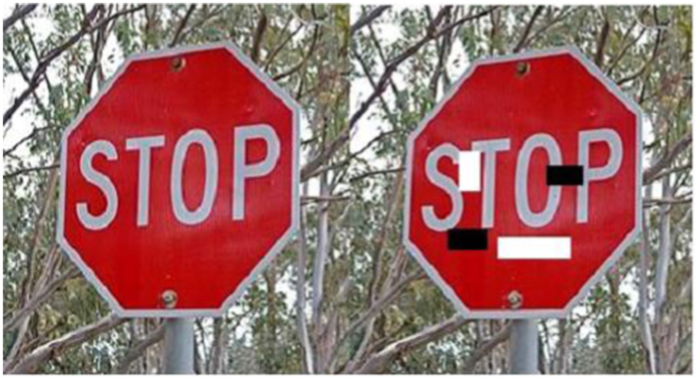 The explanation of the algorithm’s decision processes when the algorithm fails can also provide information as to improvements that need to be made to the algorithm. For example, adversarial attacks are used to determine ways to deceive the algorithm. Researchers noted that adding black and white bars to the stop sign, as illustrated in Figure 4, can make a convolutional neural network classify the image as a 35-mph sign instead of a stop sign. This helps the developer find issues in the algorithm that can be alleviated or fixed with updates and understand the flaws in the algorithm and improve it in future iterations.