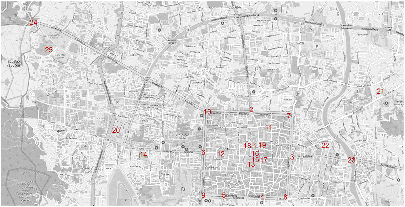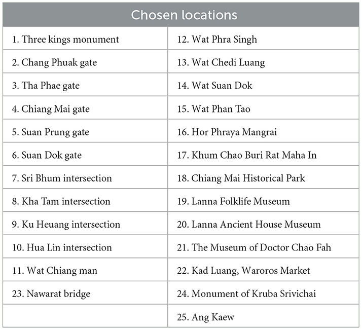 Participants were recruited using purposive sampling, targeting tourists visiting Chiang Mai Old Town between January and June 2024. Recruitment channels included travel forums, social media advertisements, and partnerships with local tourism agencies. Participants were informed clearly about the study's objectives and provided consent before participation, complying with ethical standards approved by the Chiang Mai University Research Ethics Committee (CMUREC).