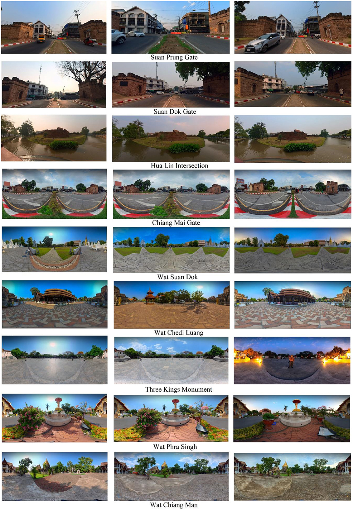 1. 360-degree Immersive Views, each of the 25 selected landmarks was captured through panoramic images at different times of the day (morning, noon, evening).