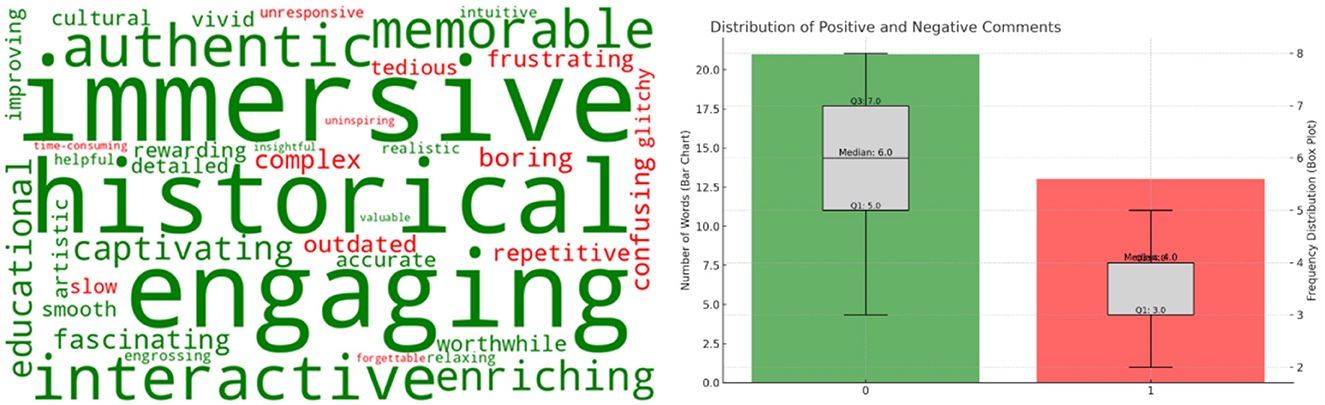 The integration of 360-degree imagery and soundscapes adds an additional interpretive layer to this spatial behavior. The high satisfaction ratings for the 360-degree scenes and the prominence of terms such as “immersive,” “historical,” and “engaging” in the word cloud indicate that multi-sensory storytelling deepens the perceived authenticity of the experience and supports place attachment.