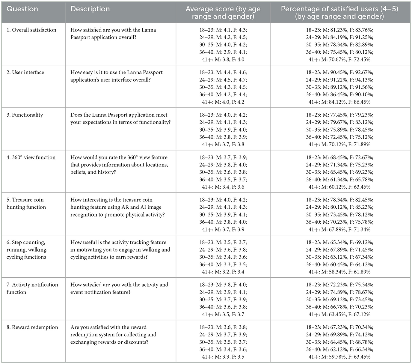 Tourist satisfaction with mobile tourism apps is largely dependent on ease of use, functional reliability, personalized services, and perceived security (Kim and Park, 2017; Wu et al., 2022). Trust in mobile apps further influences user retention, decision-making, and overall satisfaction (Morosan and DeFranco, 2016). Yet, few empirical studies have simultaneously investigated the integration of gamification, AR, and trust factors in mobile tourism contexts, particularly regarding their collective impact on varying age demographics.