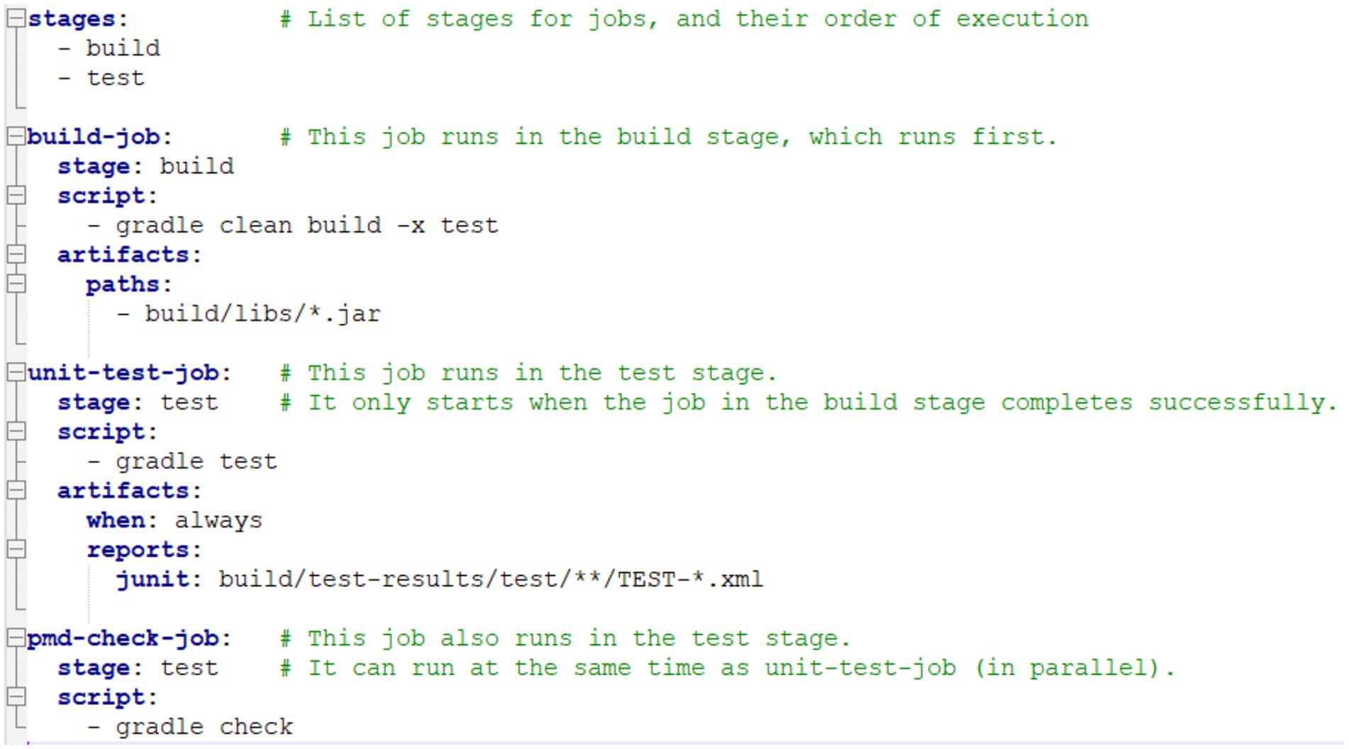 Further in this research, the following use case is used as a practical example. It shows how the most common technologies in DevOps research, GitLab and Java, are applied in model transformations for pipelines. To transform this example model into an output, the required software architecture model in UML Class diagram notation is shown on the left side of Figure 2. The application’s name is “hello-java-ci,” which also serves as the name for both the Git repository and the pipeline itself. In this current example, the Java application or library has the following parameters: unit-tests (binary value), lint_check (binary value), type (string value), and build_system (string value). If the development team adheres to standardized project structure and naming conventions, these four parameters suffice to generate a Continuous Integration pipeline model using transformation rules. The same conceptual model can be expressed as the GitLab pipeline code illustrated in Figure 3. It consists of two key sections - stages, where the pipeline is documented in sequential order; and jobs, which are mapped to the stages. This code must be saved as a text file named “.gitlab-ci.yml” at the root of the Git repository next to the codebase of the application for the GitLab CI/CD tool to automatically pick it up. As part of this proof-of-concept, the DevOps pipeline meta-model described in Section 5 is used as the structural target for the transformation, ensuring that the generated model conforms to clearly defined pipeline elements.