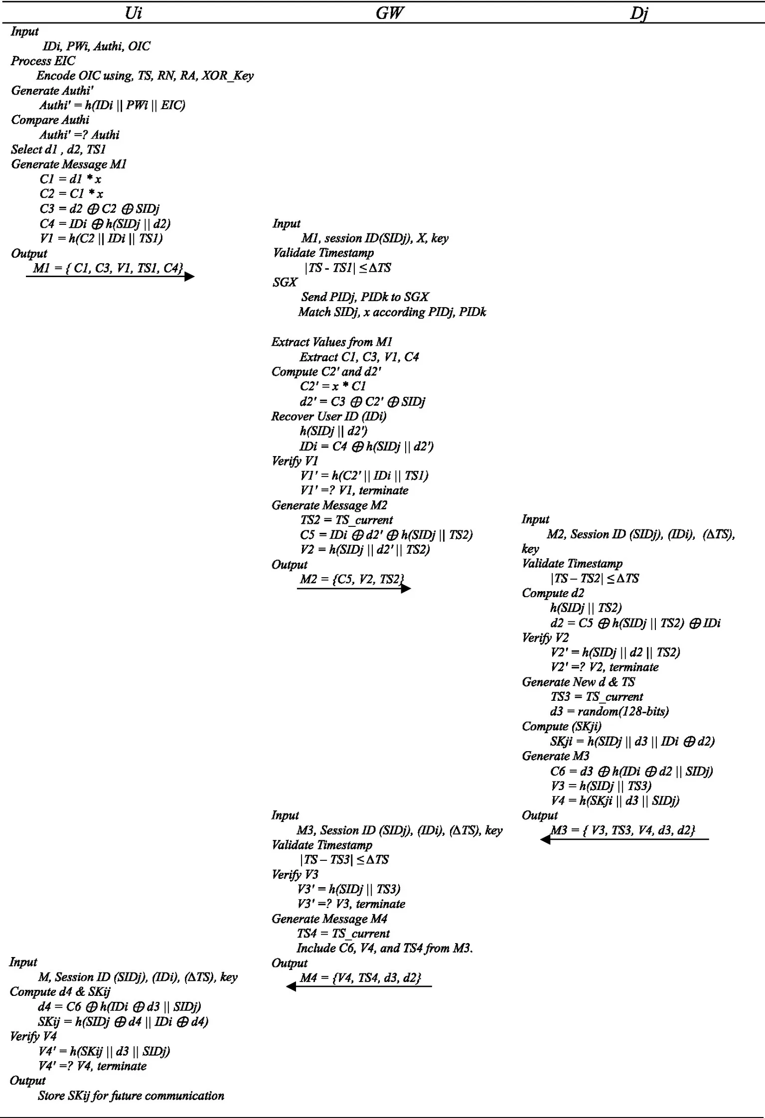 Develop a secure authentication scheme for a smart home environment. This scheme facilitates strong mutual authentication between the user, gateway, and smart device. This is achieved through a series of message exchanges that leverage the OTIC and an encrypted nonce to establish a secure session key. The protocol’s design ensures that all communicating parties are authenticated, providing a higher level of trust and security than solutions that only authenticate one party.