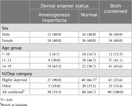 Table 1. Sociodemographic characteristics by dental enamel status (brackets contain column percentages unless otherwise indicated).