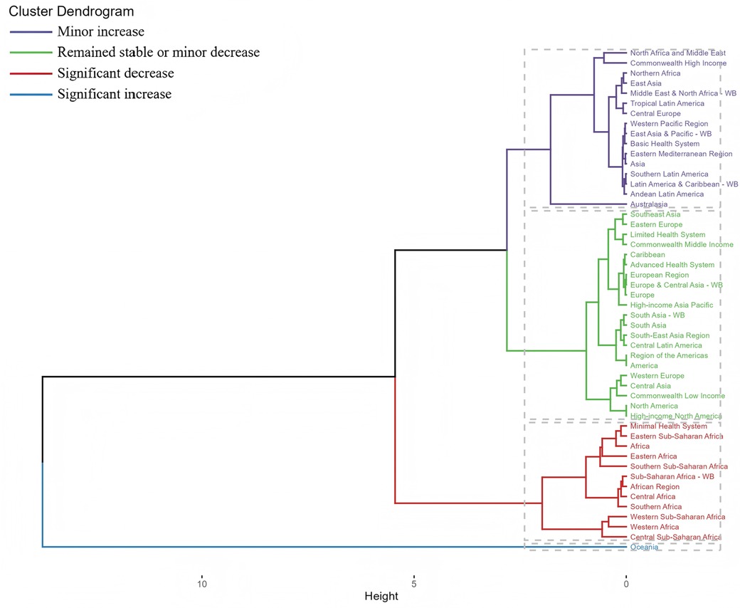 Figure 13. National clustering of changes in the global disease burden due to periodontal disease from 1990 to 2021.