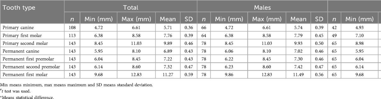 19. Abaid S, Zafar S, Kruger E, Tennant M. Mesiodistal dimensions and sexual dimorphism of teeth of contemporary western Australian adolescents. J Oral Sci. (2021) 63:247–51. doi: 10.2334/josnusd.20-0596