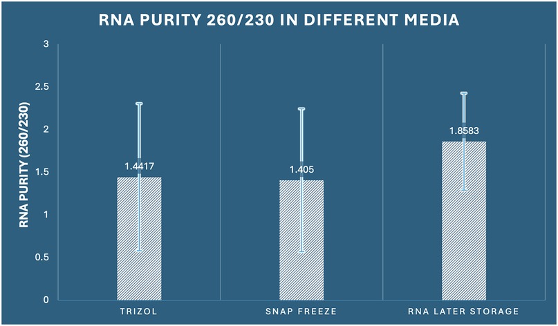Figure 4. Comparison of RNA purity (260/230 ratio) among the three preservation methods in dental pulp tissue.
