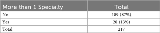 13% (28/217) of specialists reported an additional specialty (Table 9).
