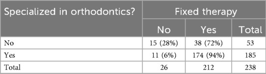 Table 3. Comparison of orthodontic techniques used by dentists with and without orthodontic specialization.