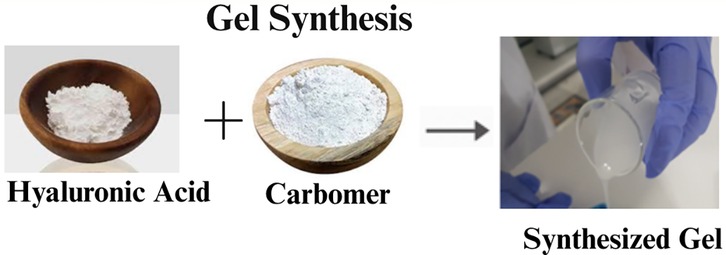 First, 1.25 g of hyaluronic acid was gradually added to 100 mL of deionized water in a solution bottle. The solution was then covered with a lid and placed on a hot plate stirrer and stirred at 650 rpm for 3 h at room temperature (25°C) to form a hyaluronic acid gel.
