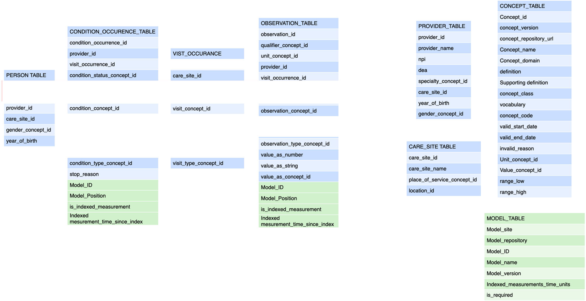 Within the concept of a FHIR PlanDef the order of activities is defined and the payload of one or more terms are identified for each activity. At the time of execution the PlanDef is instantiated as an individually assigned care plan (FHIR CarePlan). The execution of the individual patient CarePlan is guided by clinical process software (published elsewhere) that holds both the planning and guiding of the order of procedures. Each activity with its payload of terms generates one or more FHIR observations or FHIR forms. The FHIR observations are annotated according to the common data model for the project (Figure 3). The data model was derived to also satisfy the OMOP standard (30) which is designed to make data available for multiple purposes and has a solid translation table to FHIR resources such as FHIR Observation. The major addition (depicted in green) to the model was the explicit reference in each observation to the care plan_ID and the position in that care plan (Time as categorical concept). Also, the capability of the FHIR observation of annotating date/time elapsed from index date/time was used as this is a common standard for annotation in clinical development.