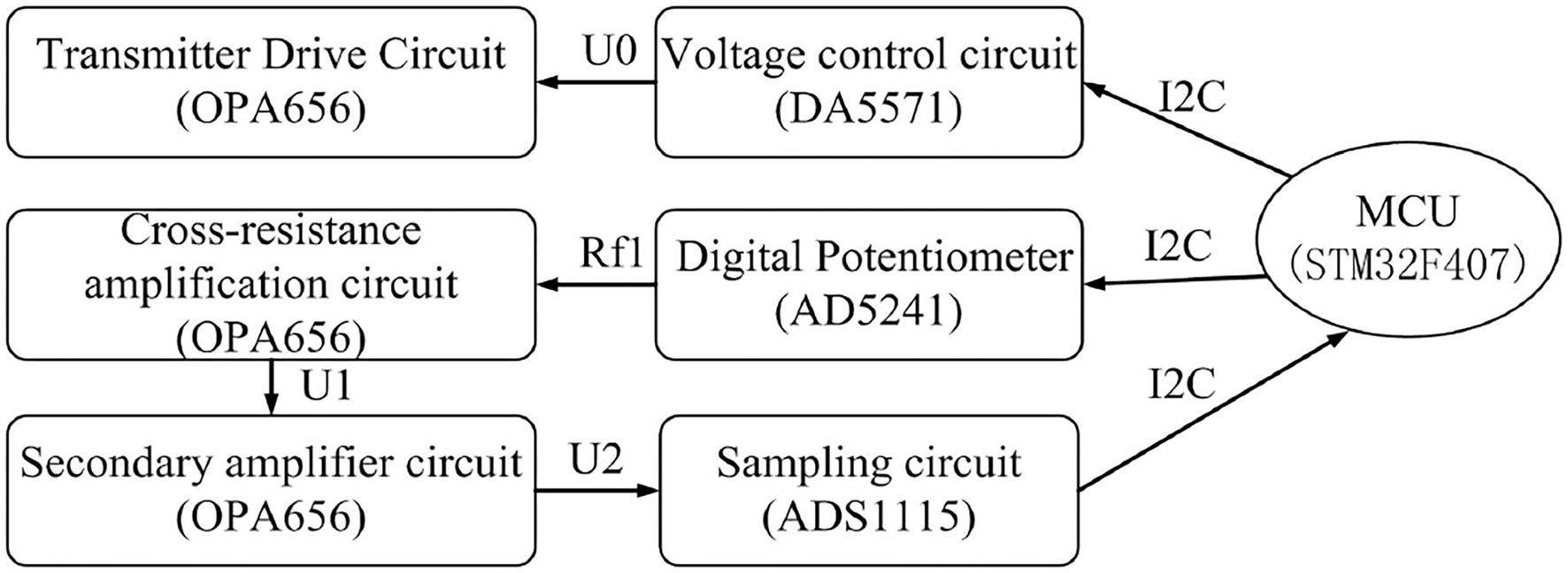 In the application, the master chip STM32F407 received the AC signal of the ADS1115 via I2C, and then, according to the size of the DC component of the AC signal, the drive voltage U0 of the fiber transmitter was controlled by the DA5571 module and the variable resistance of the digital interline AD5241 to achieve the cross-block amplifier magnification control, and finally form a receiver control ring to achieve the best output.