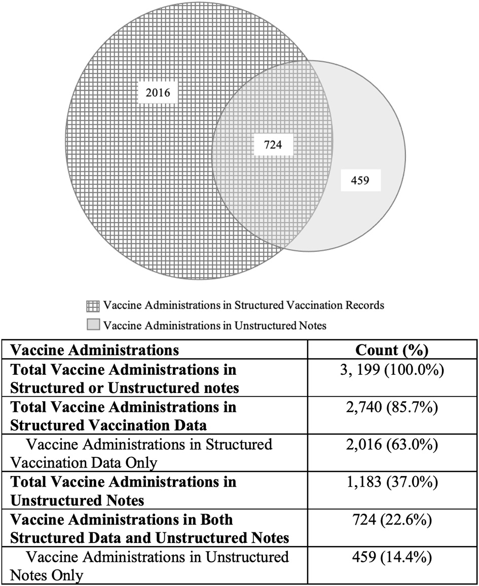 Vaccine administrations identified in structured vaccination data and unstructured notes.
