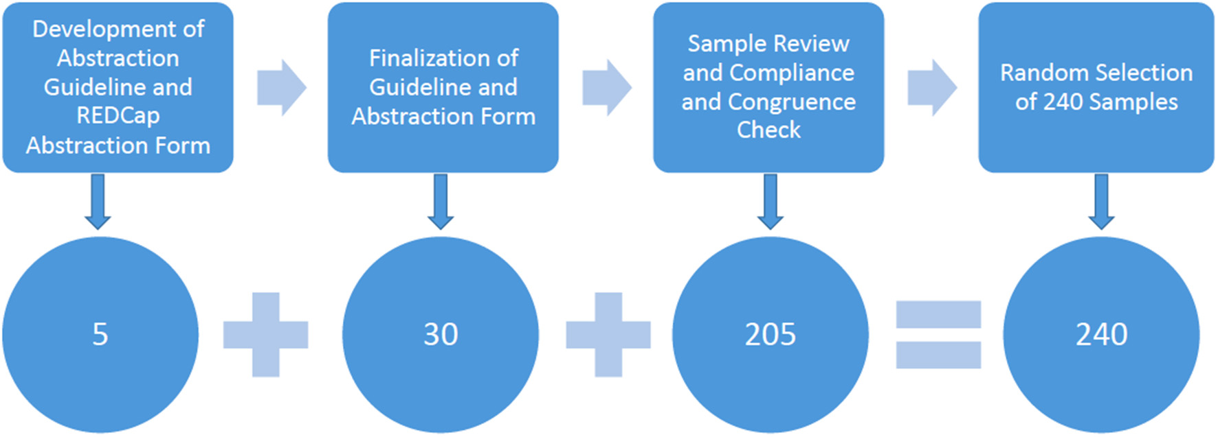 Subsequently, the REDCap (20) data entry form was finalized to abstract information from the remaining consults until data saturation was achieved (Figure 1). Two reviewers (KW, JKM) verified the form for compliance with the data abstraction guideline and checked for congruence by checking three medical consults completed by each reviewer. Any inconsistencies were discussed among the researchers and resolved.